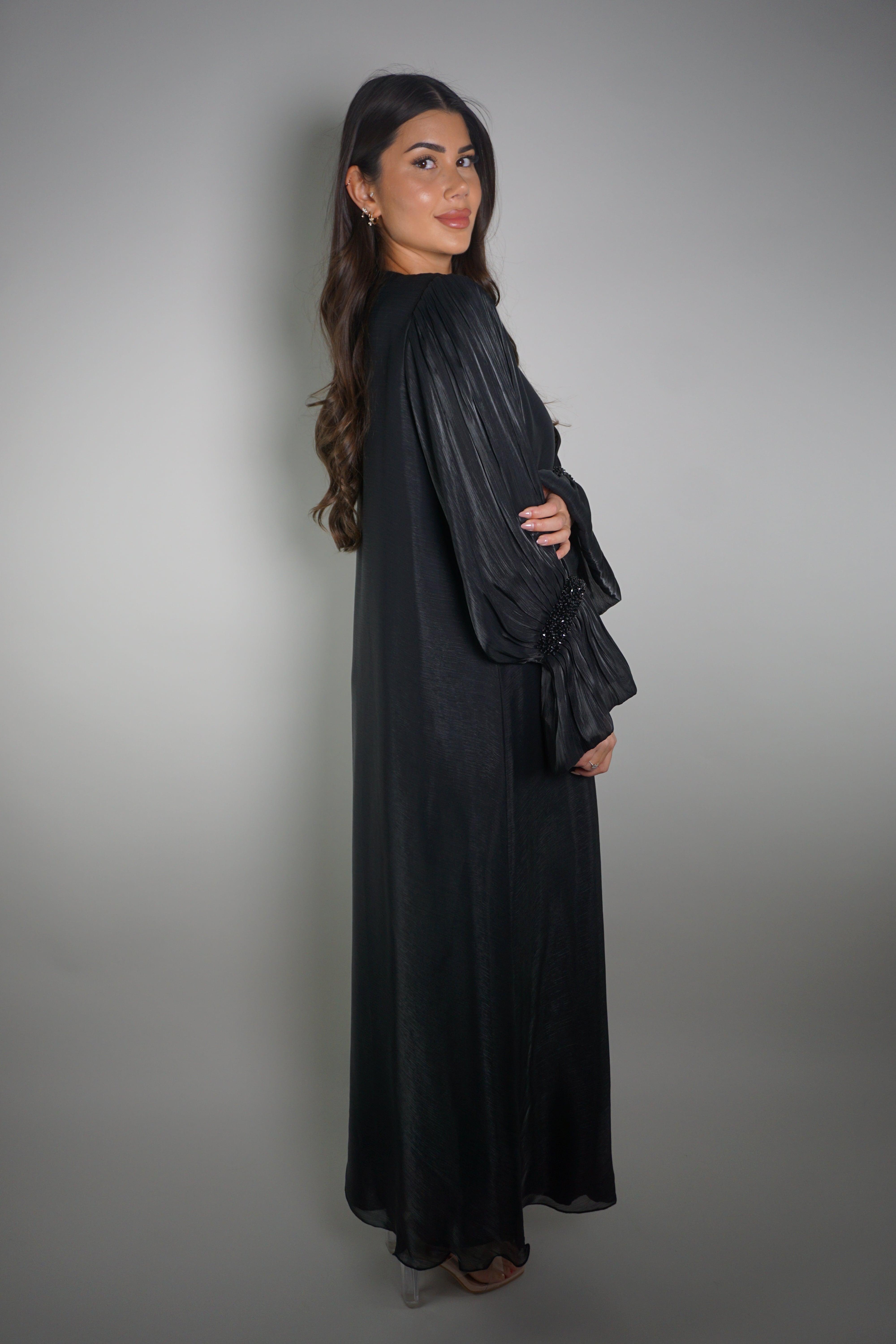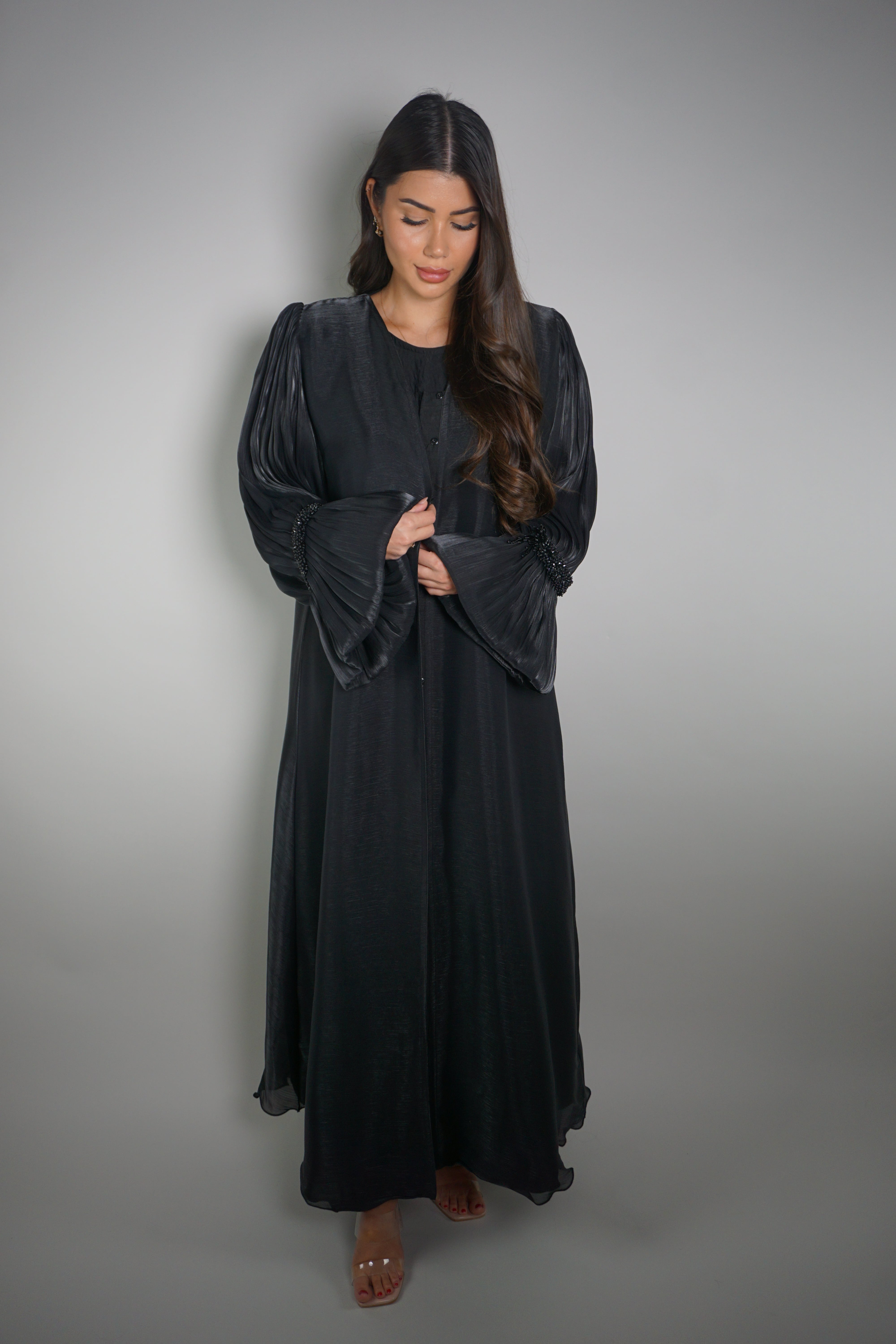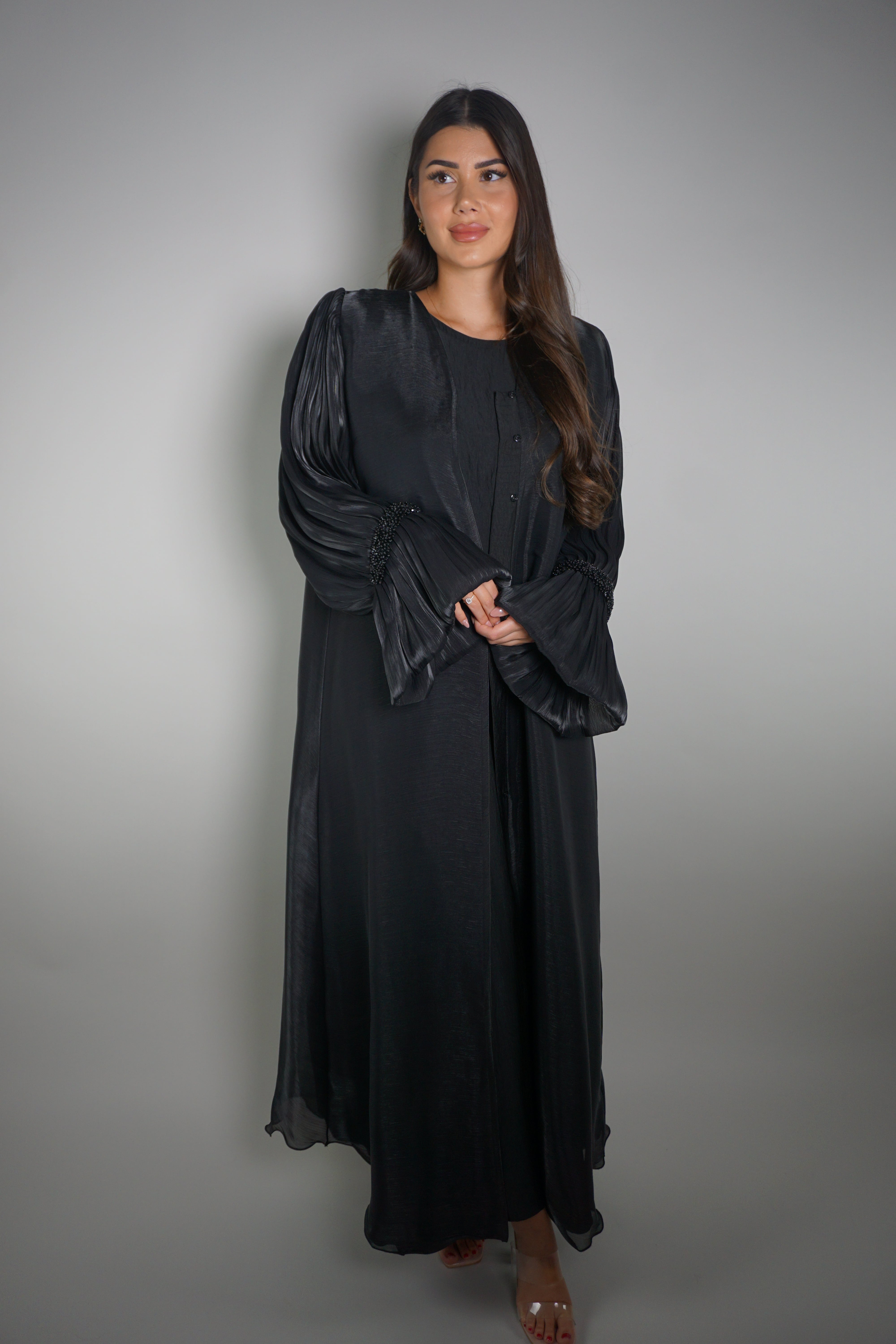 BLACK PLISSÉ SLEEVE ABAYA