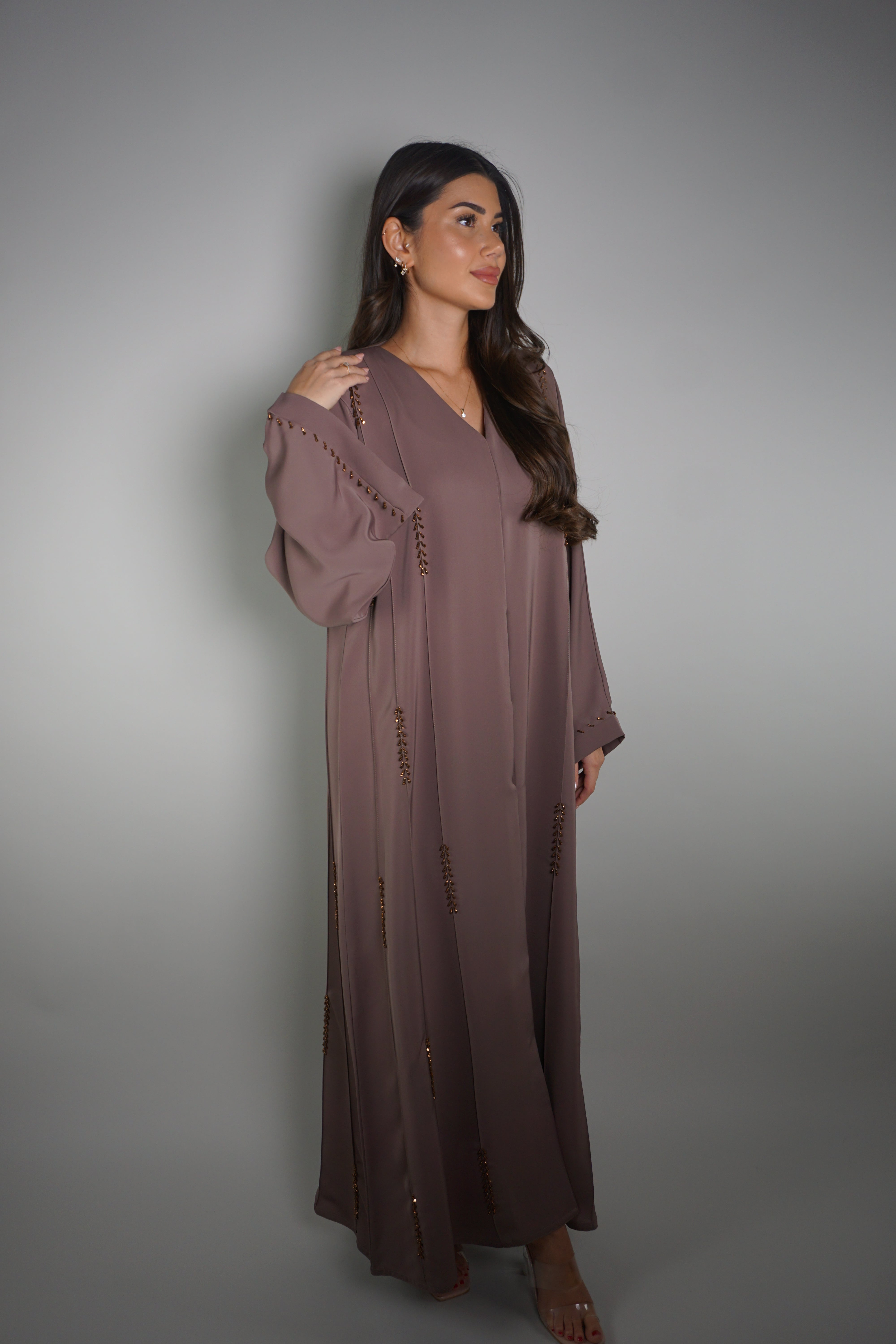 EARTH MAUVE EMBELLISHED ABAYA