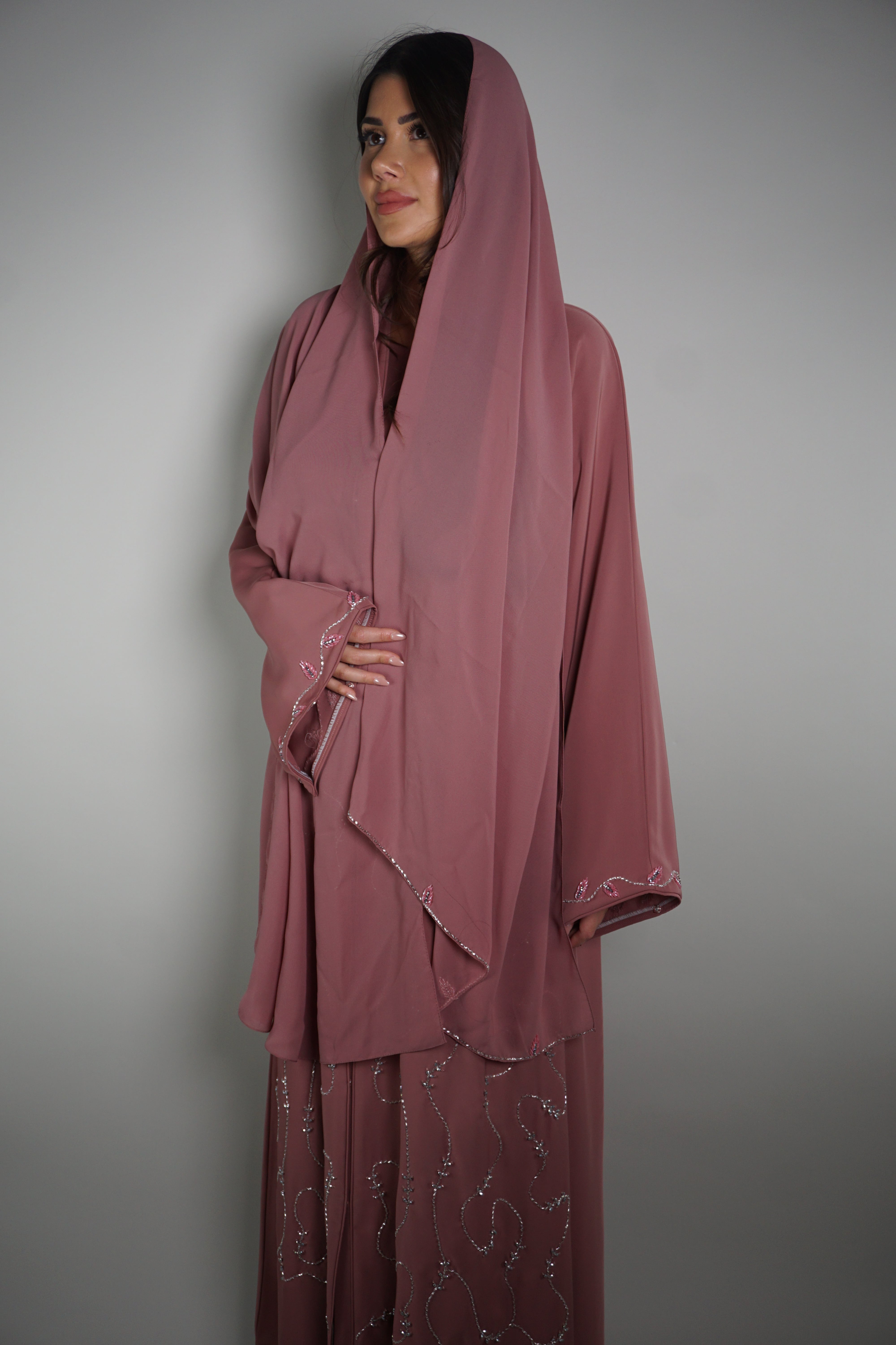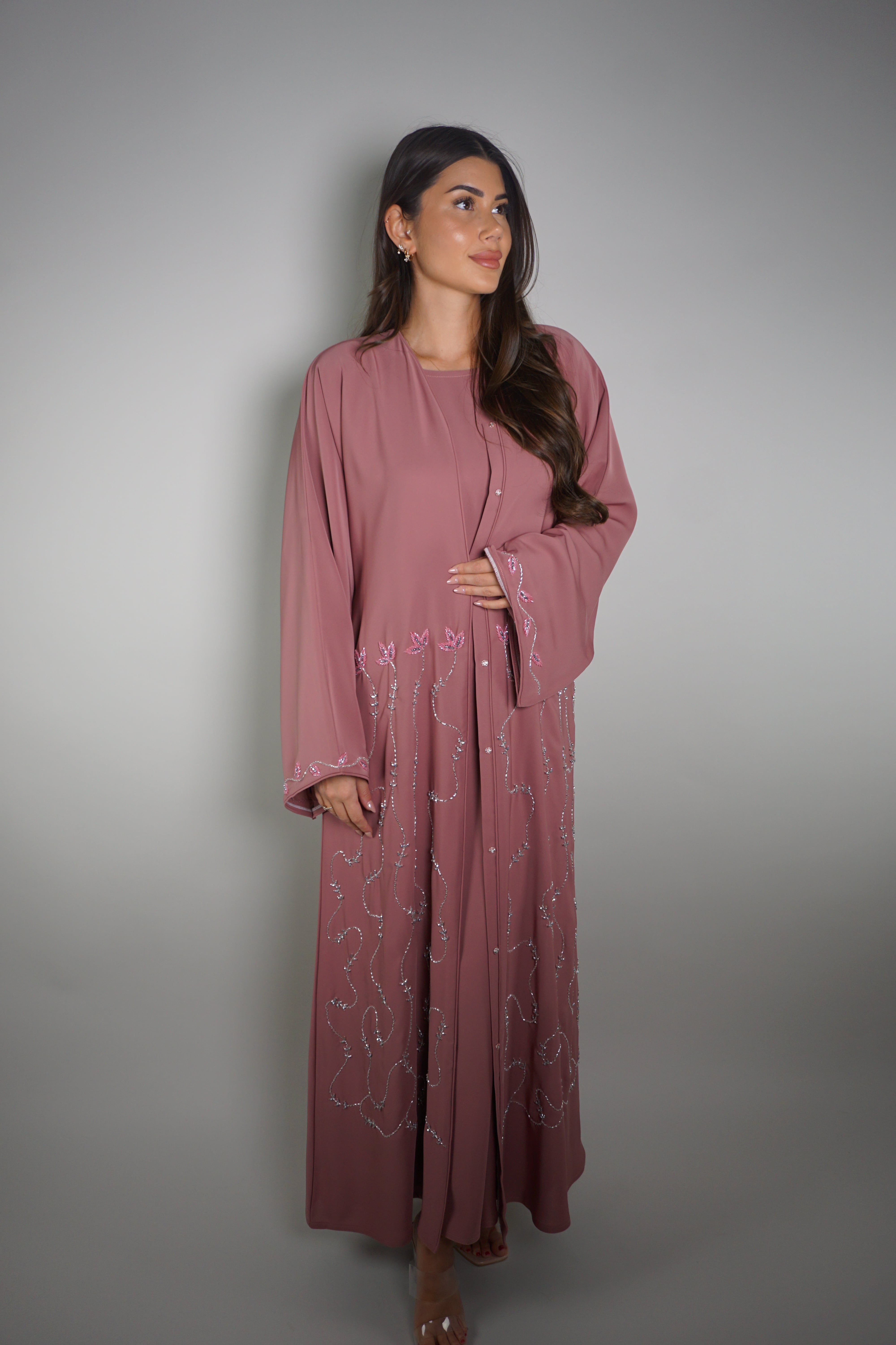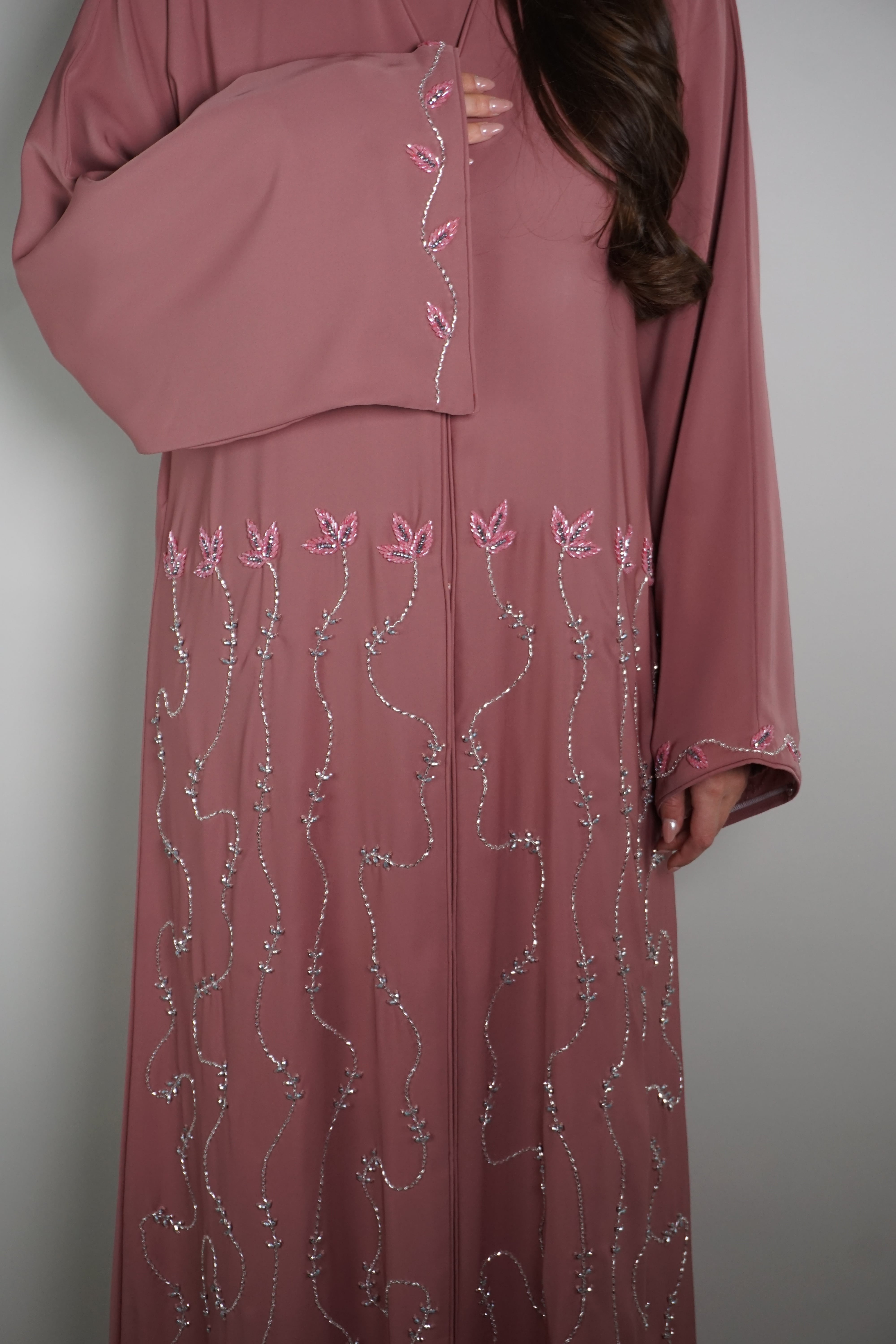 BLUSHED LEAF EMBELLISHED ABAYA