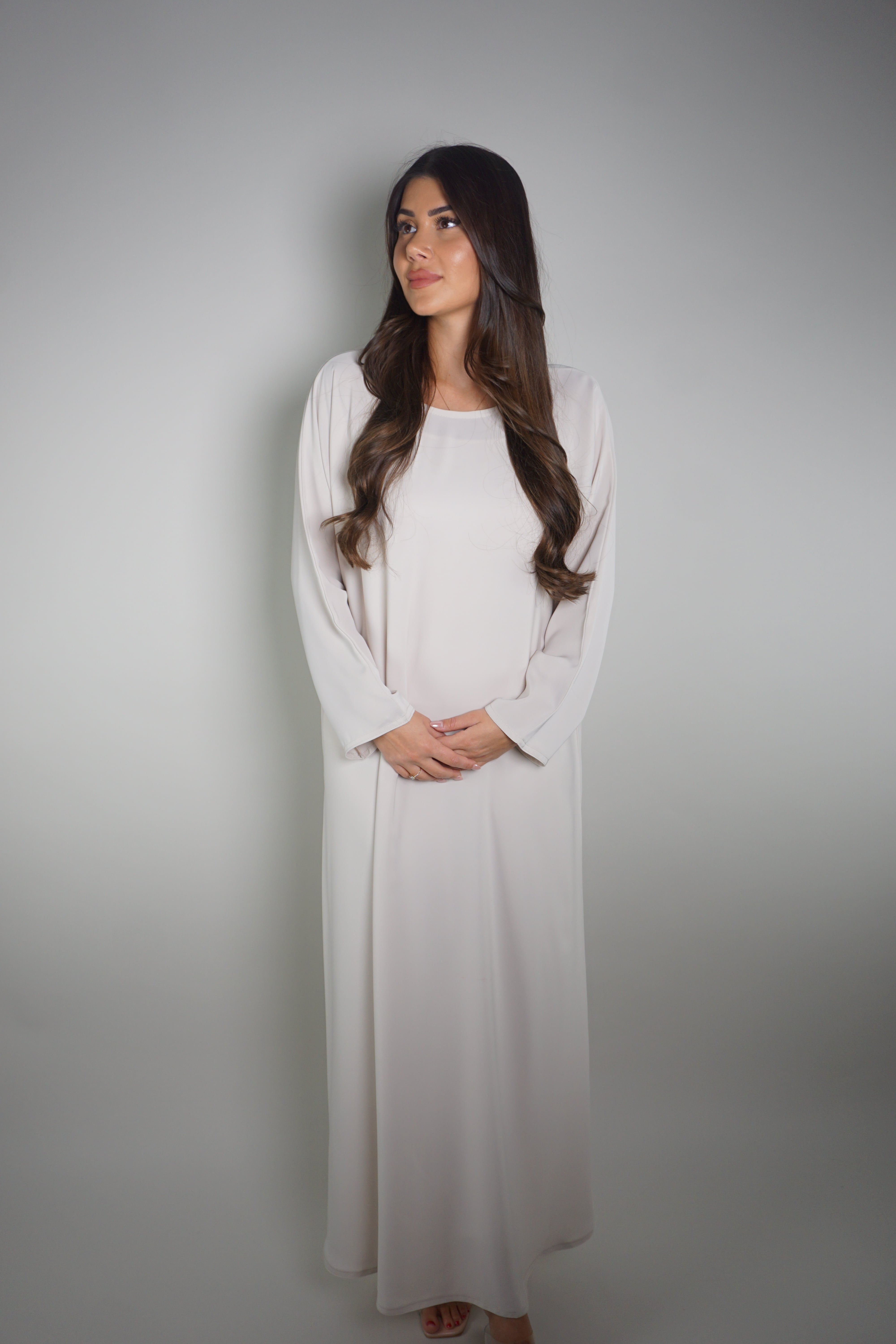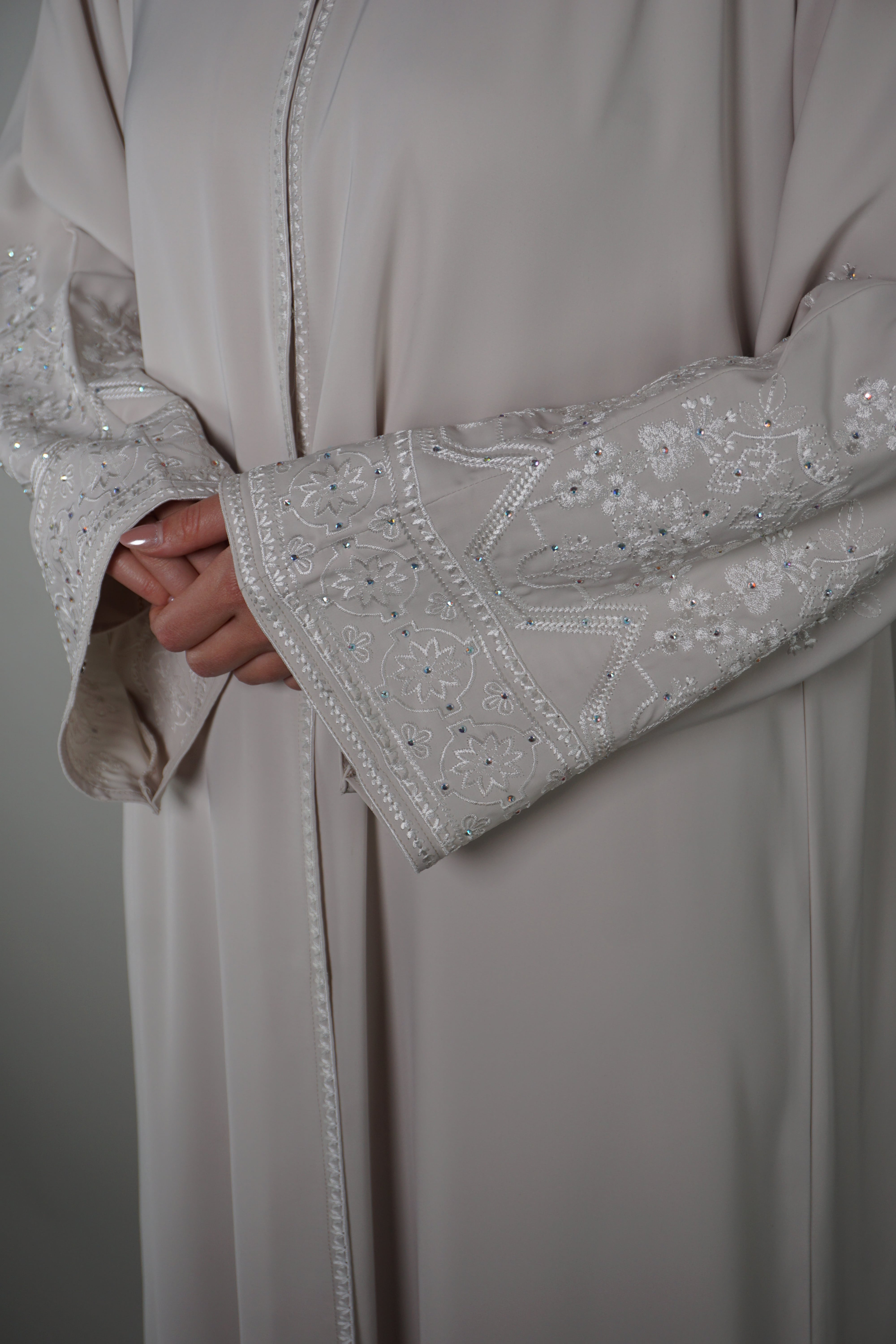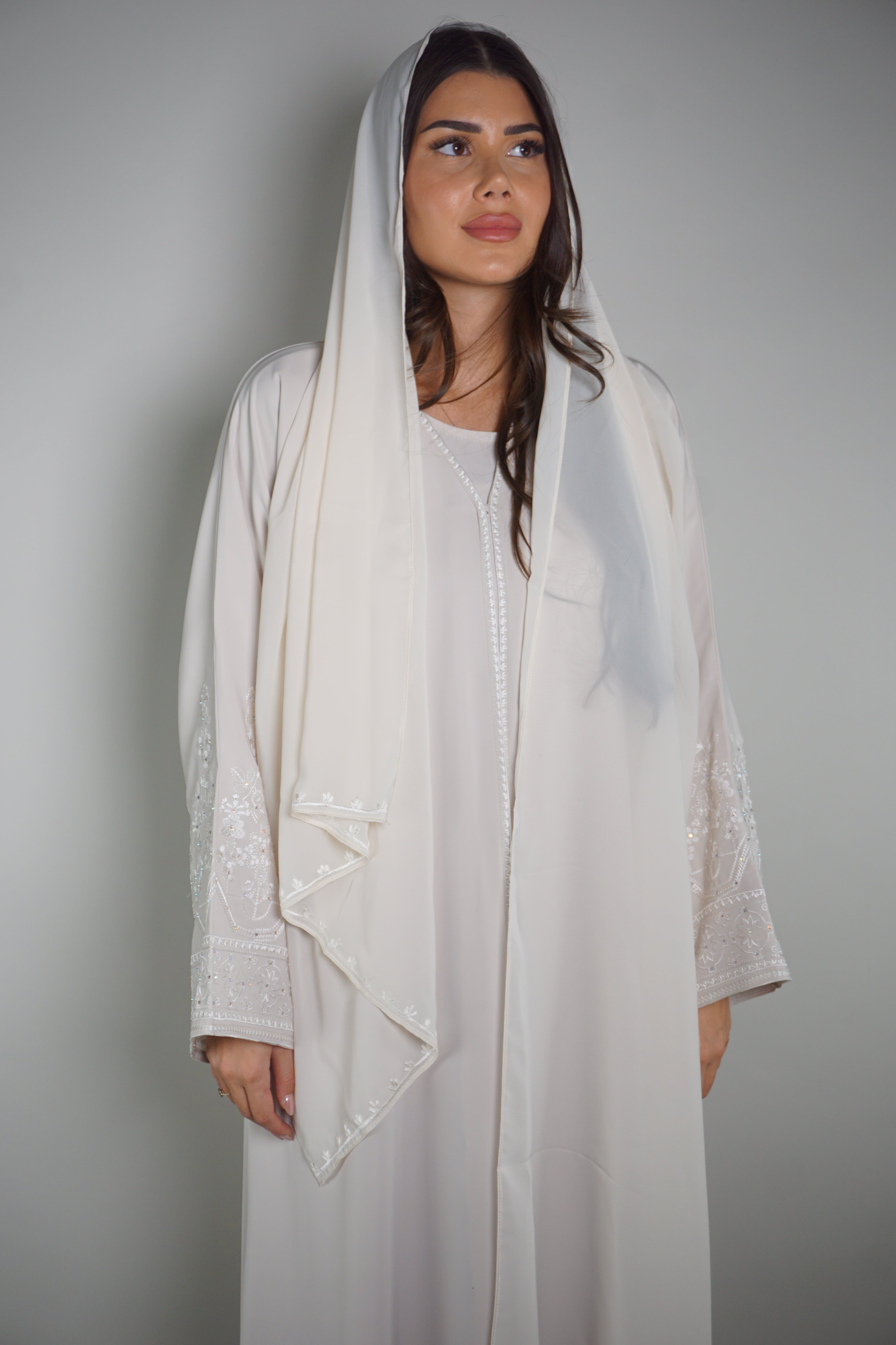CREAMLIGHT DRAPED THREAD ABAYA
