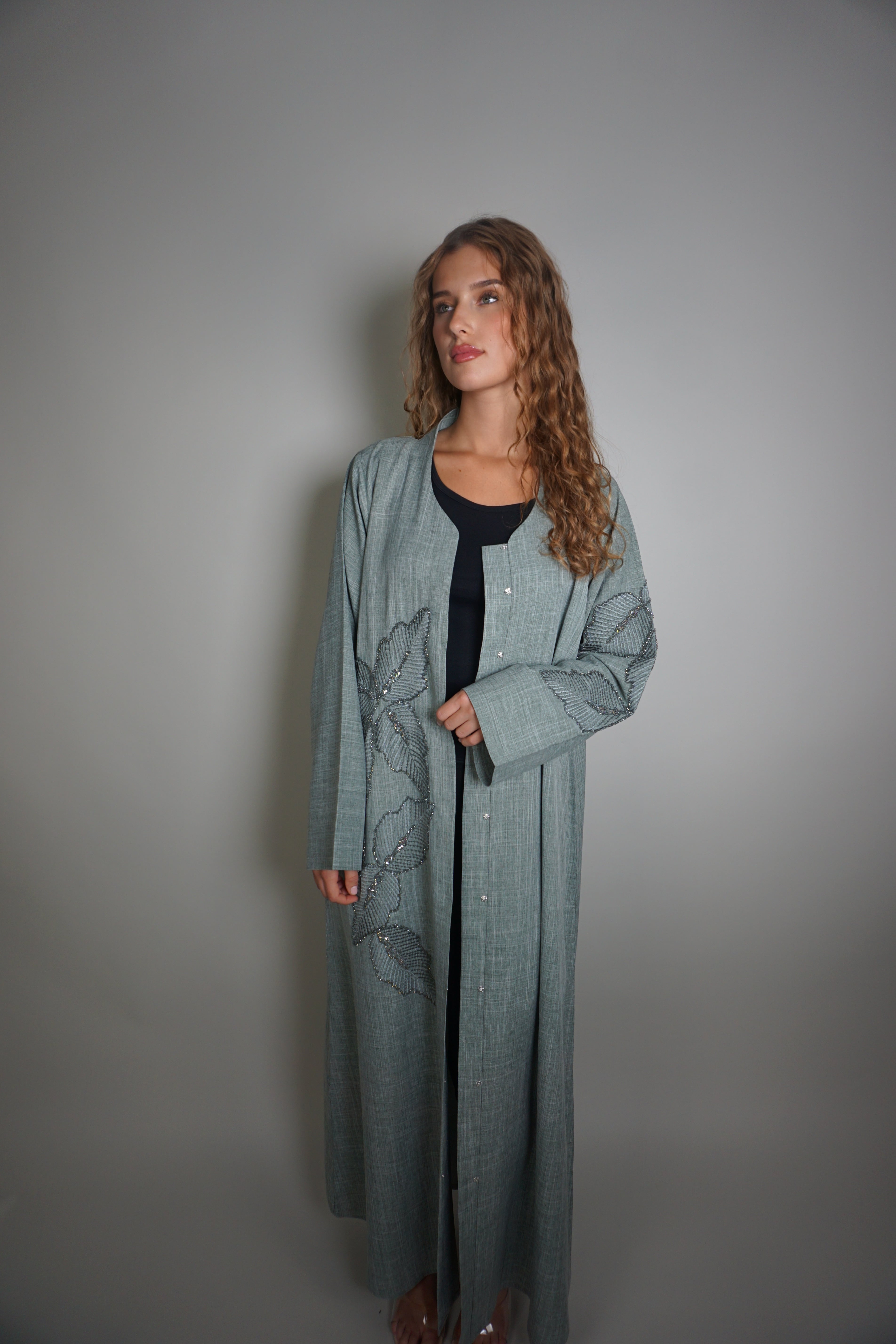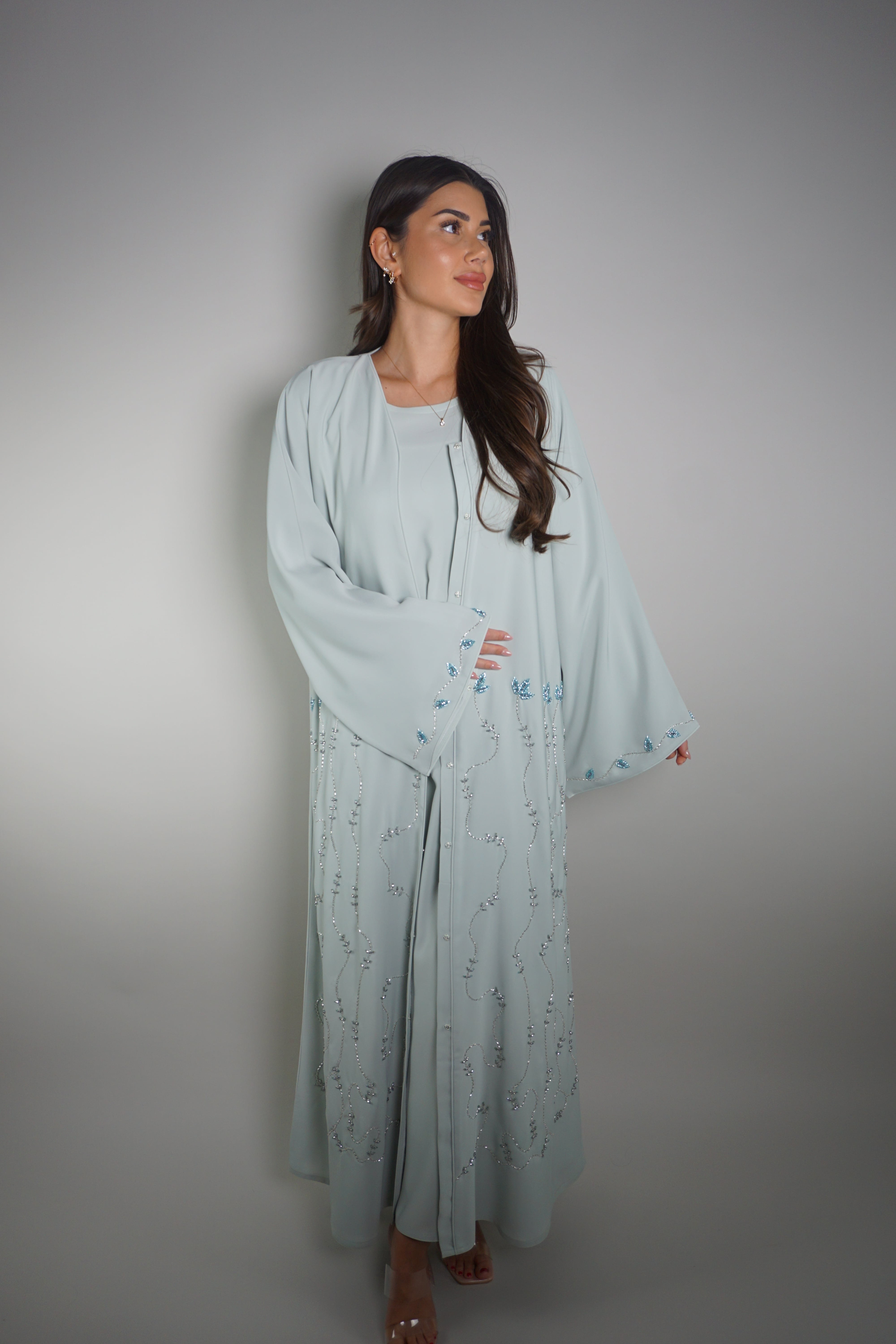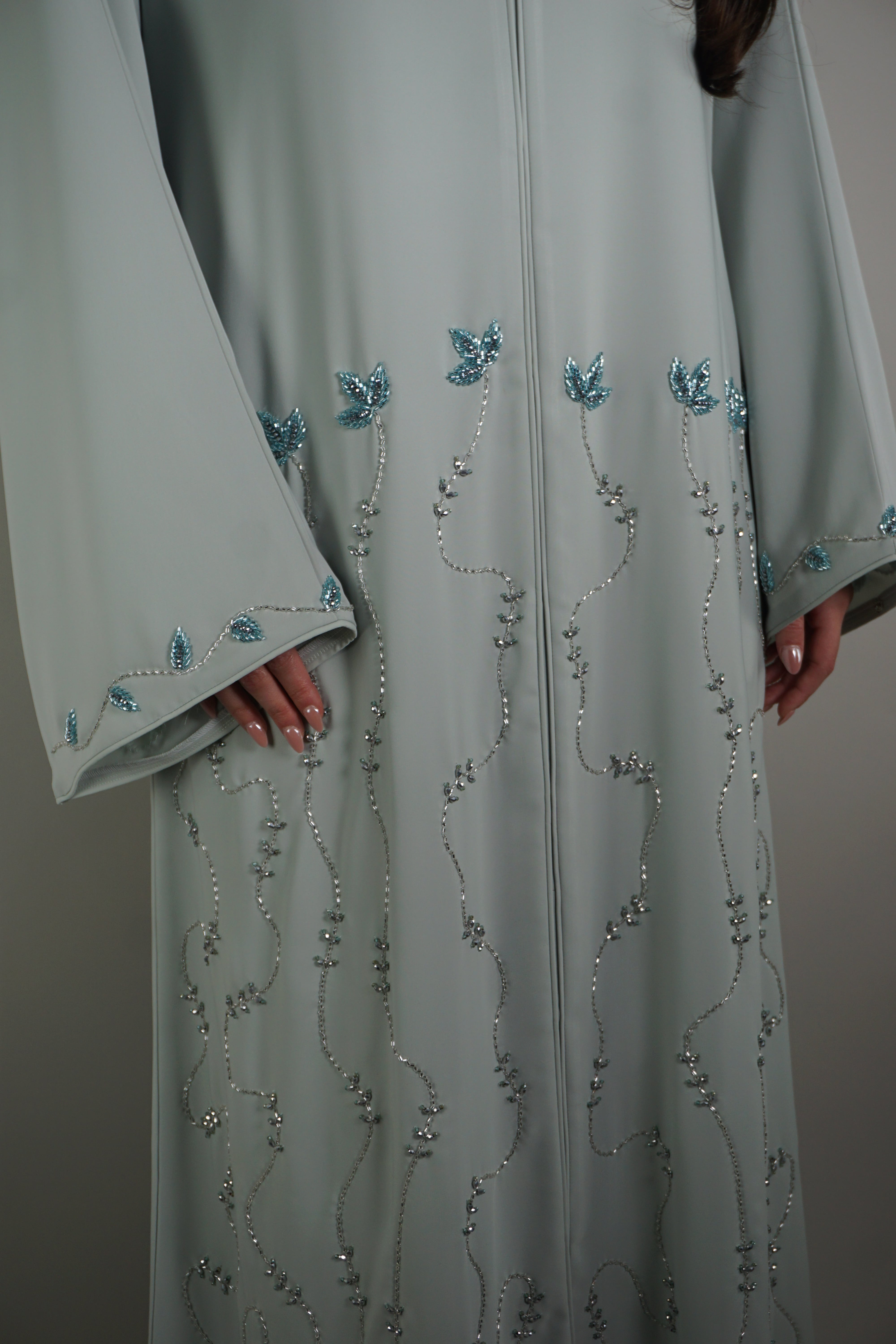 ASH BLUE BEADED BLOOM ABAYA