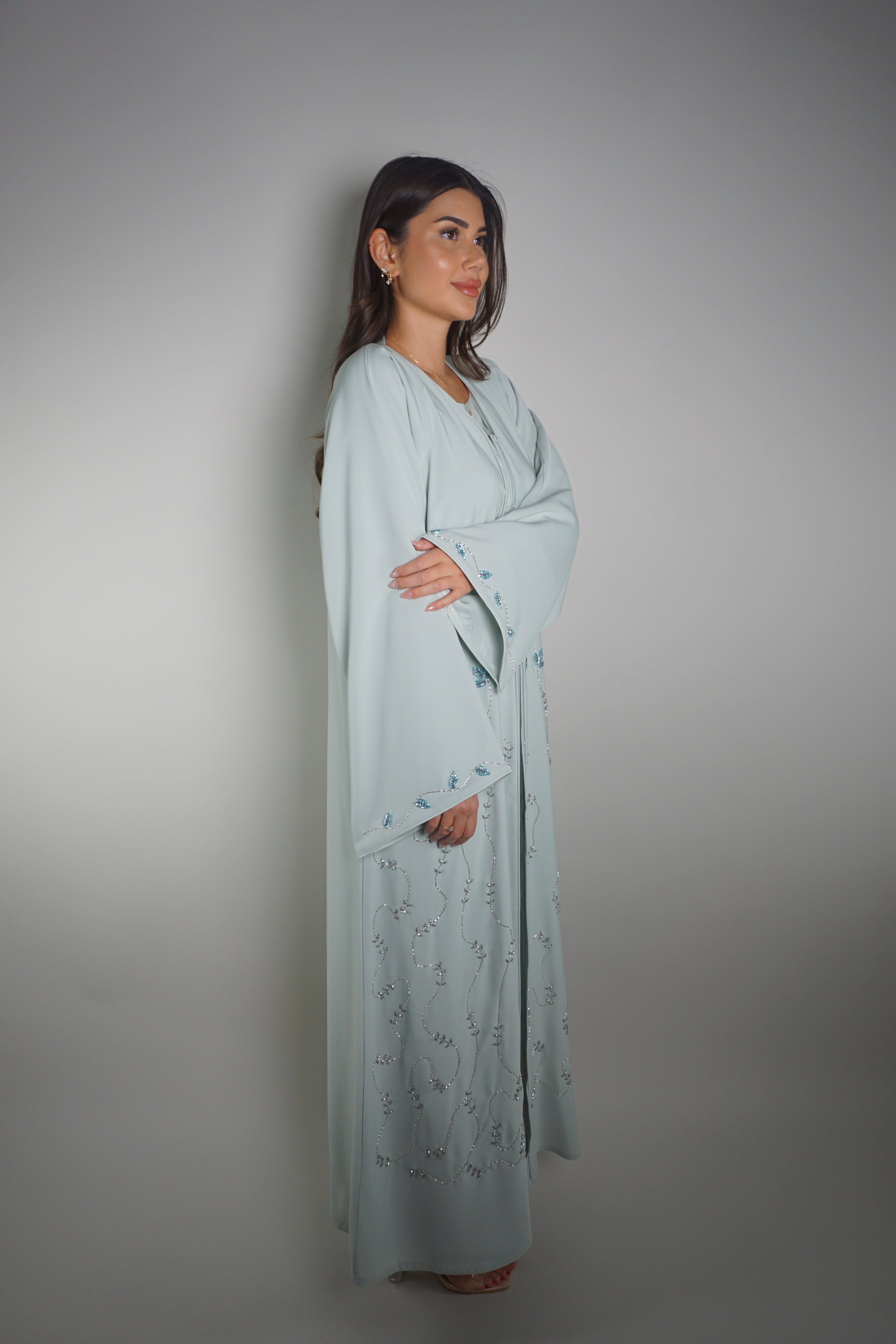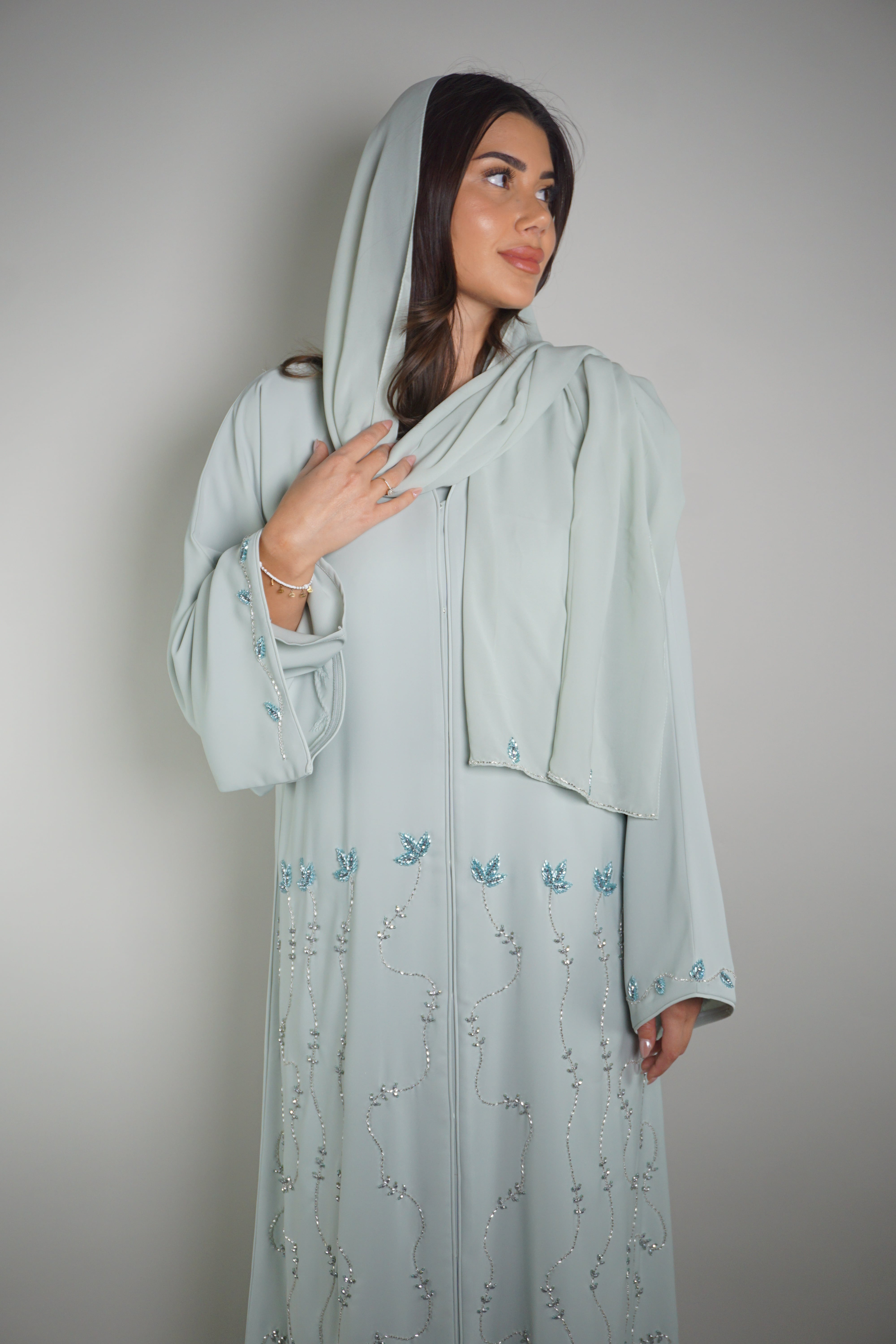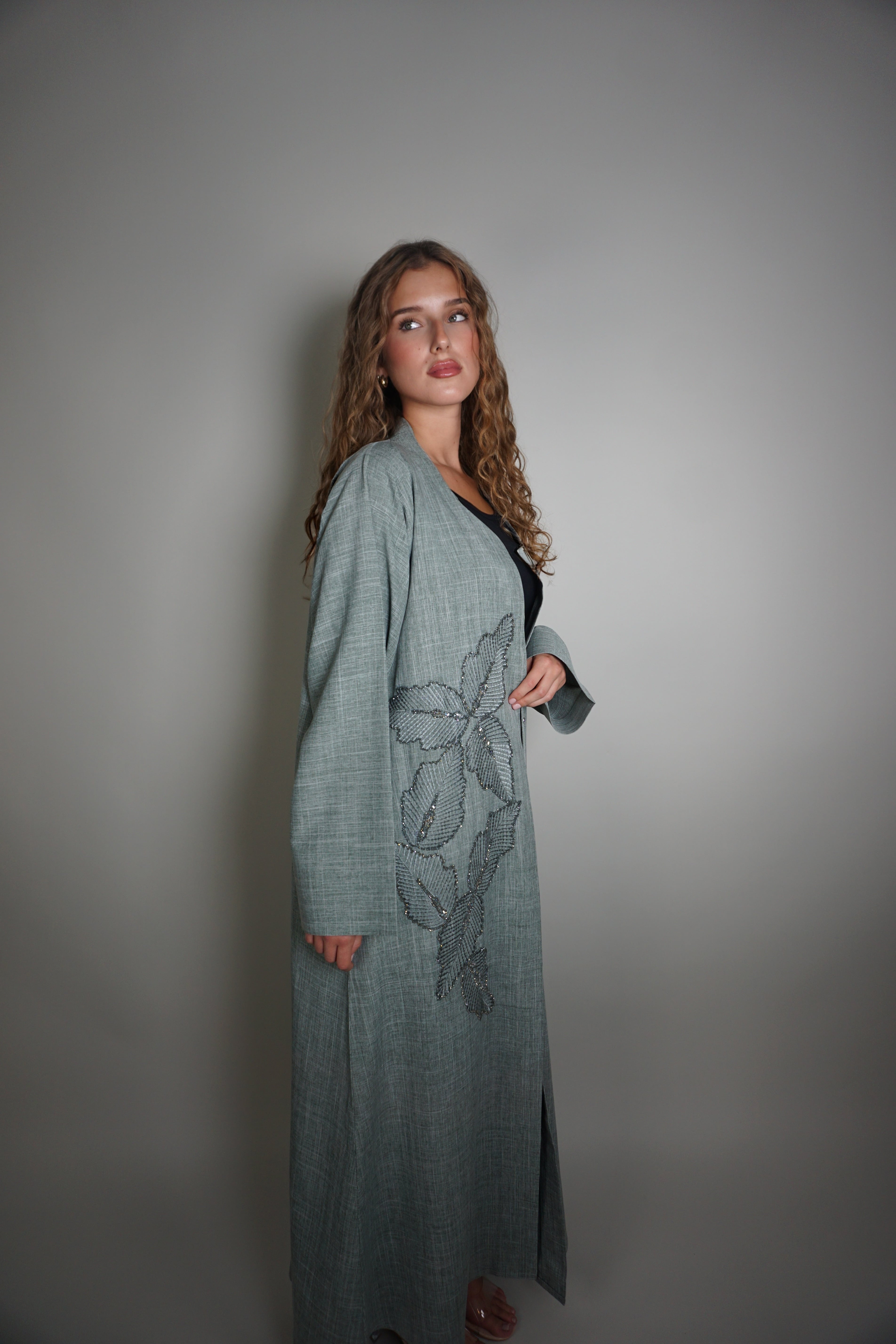 ASH BLUE BEADED BLOOM ABAYA