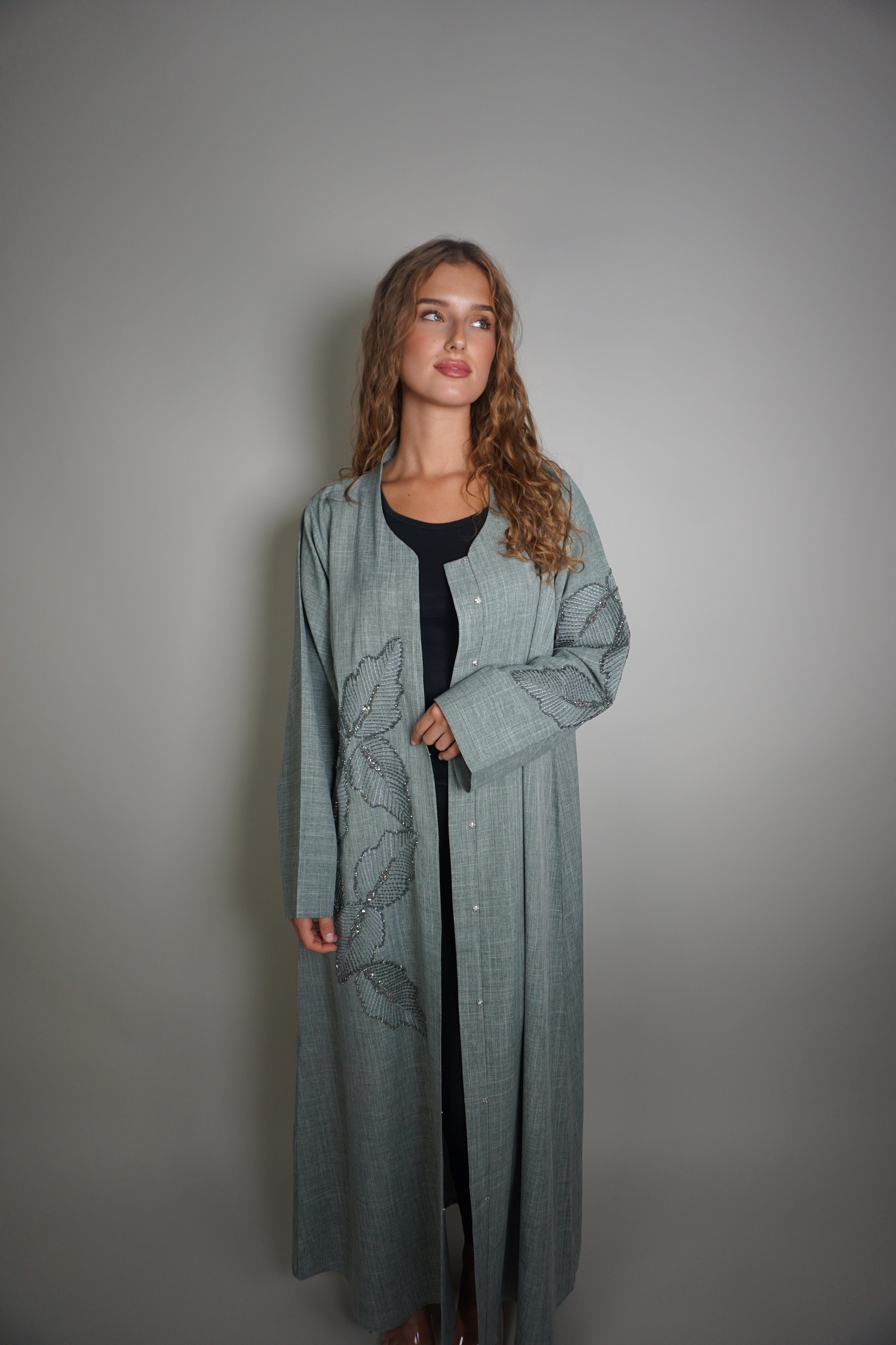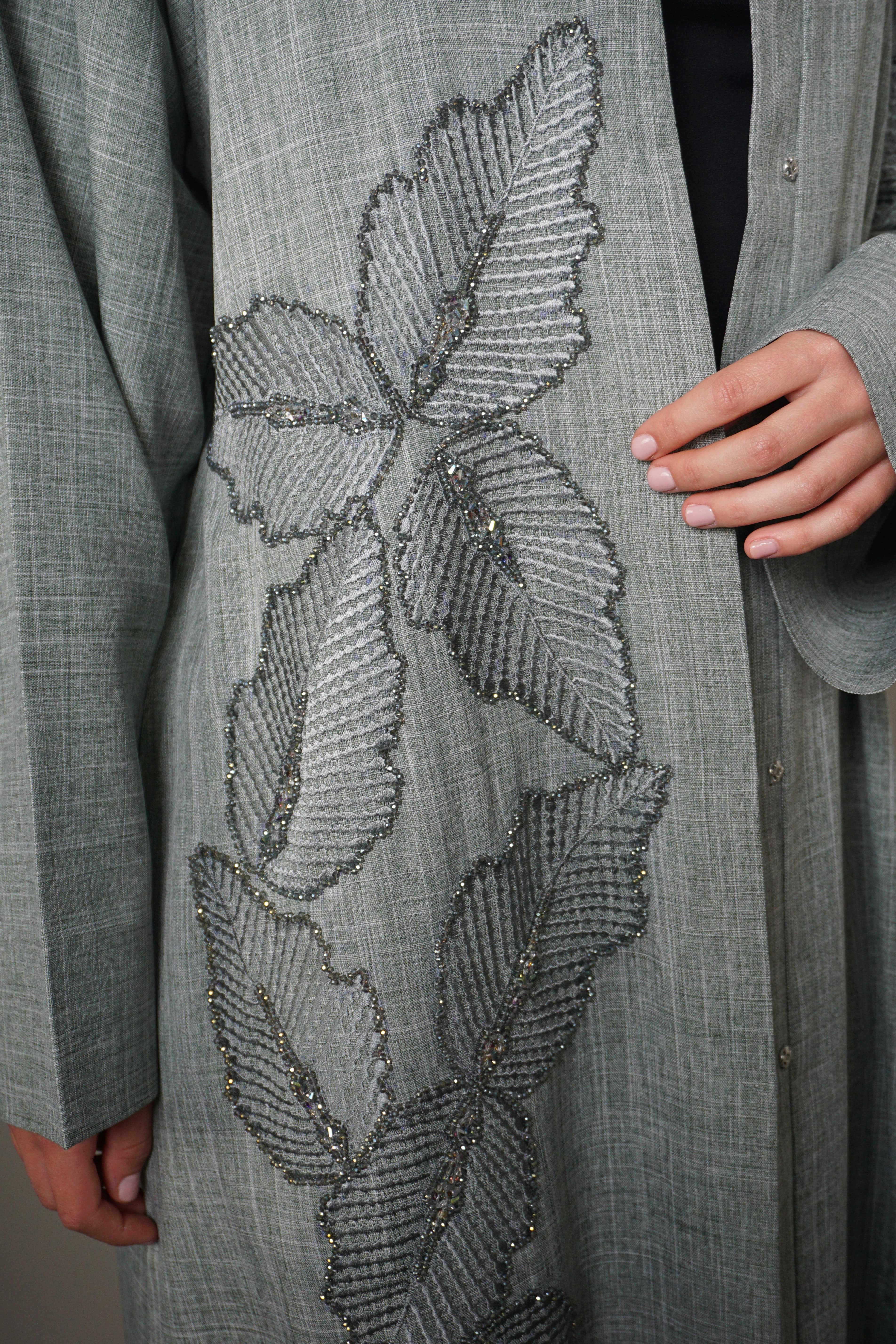 CRYSTAL LEAF EMBELLISHED ABAYA